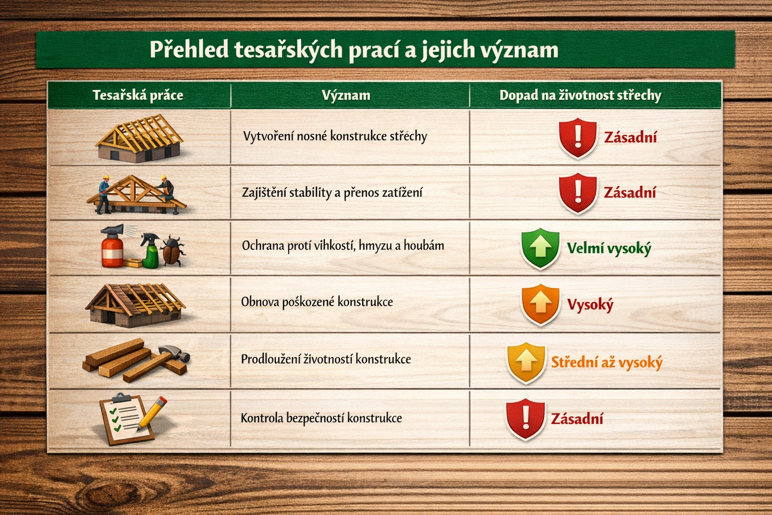 Přehled hlavních tesařských prací a jejich význam